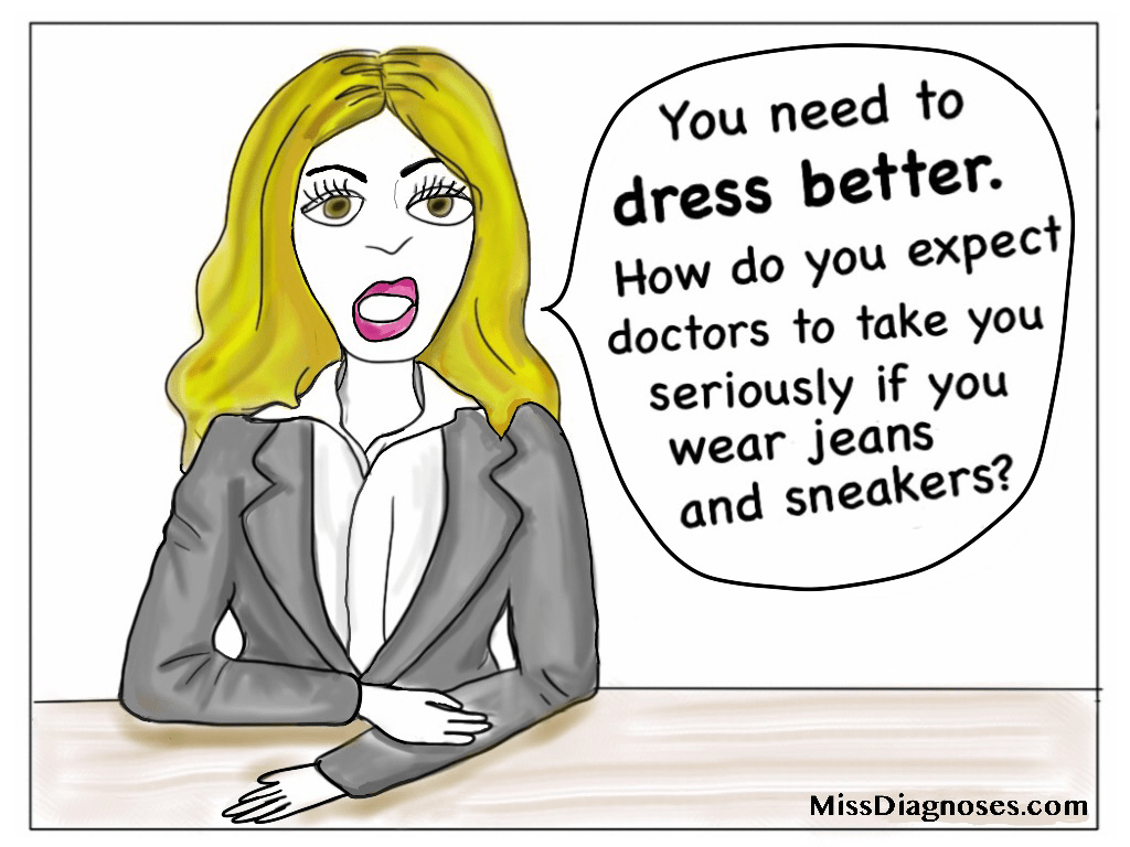 I got more obnoxious comments during that time than I did when I got a bit better and didn’t look sick anymore. A lot of them were from doctors. Some of the comments were strange: at one point I had so much back pain that I could only wear sneakers, yet there was one psychologist who was somehow convinced that I was only going to get to the bottom of my medical issues if I wore a business suit and heels to my doctor’s appointments.